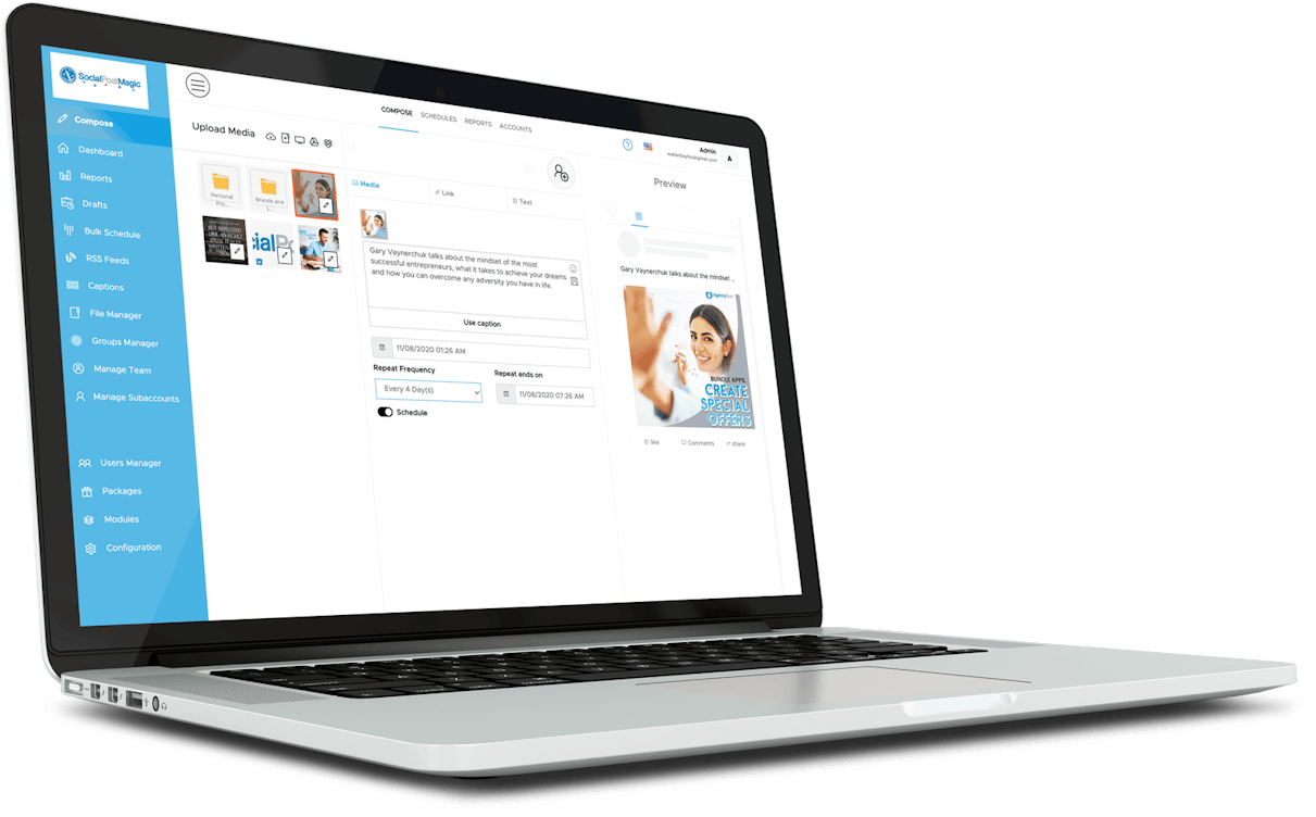 With Social Post Magic, you can schedule your posts to appear on any platform at any time.Â