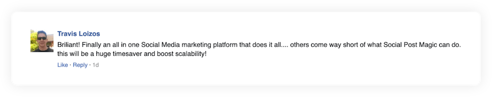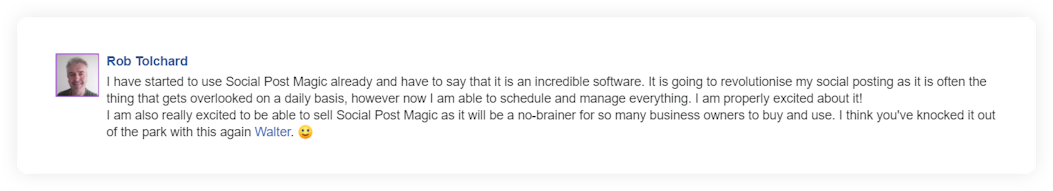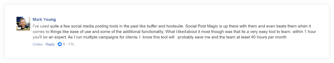 P.S. You have already seen how Social Post Magic is going to make your social media posting quicker, easier to manage and more effective. It’s going to get you better results with your engagement, reach, profits and more - all with less effort. And it’s going to magically build you a library of content that you can reuse and recycle with just one click - meaning you can build your business, your brand and your bank balance - all under one roof. All easy. All fast. All effortless.